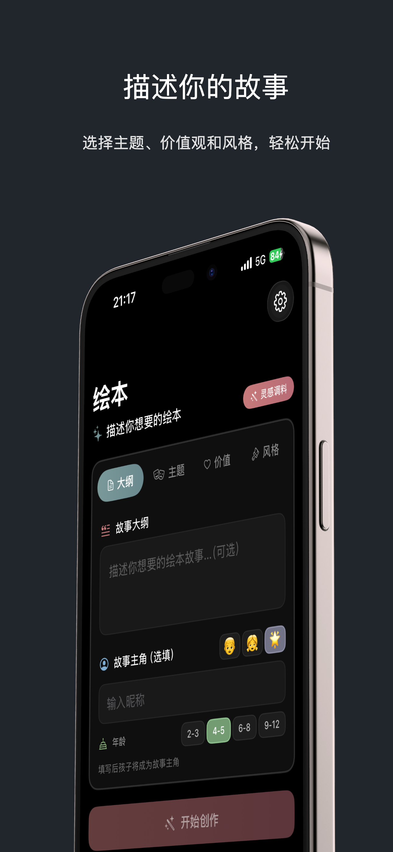 16 种主题、8 种品德价值观,AI 为你的孩子量身打造独一无二的故事。 16 themes, 8 life values — AI crafts a unique story tailored to your child.
